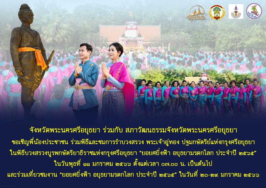 และร่วมเที่ยวชมงาน “ยอยศยิ่งฟ้า อยุธยามรดกโลก ประจำปี 2565” ในวันที่ 20-29 มกราคม 2566