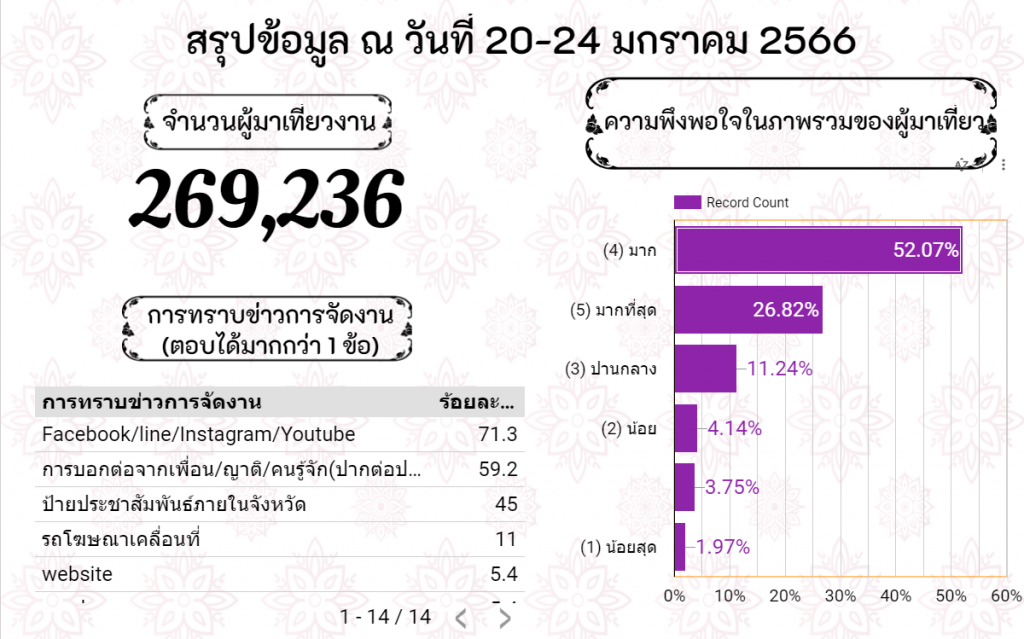 • ความพึงพอใจของนักท่องเที่ยวที่มาเที่ยวงานยอยศยิ่งฟ้า อยุธยามรดกโลก ในวันที่ 20 -23 มกราคม 2566 (รวม 4 วัน)